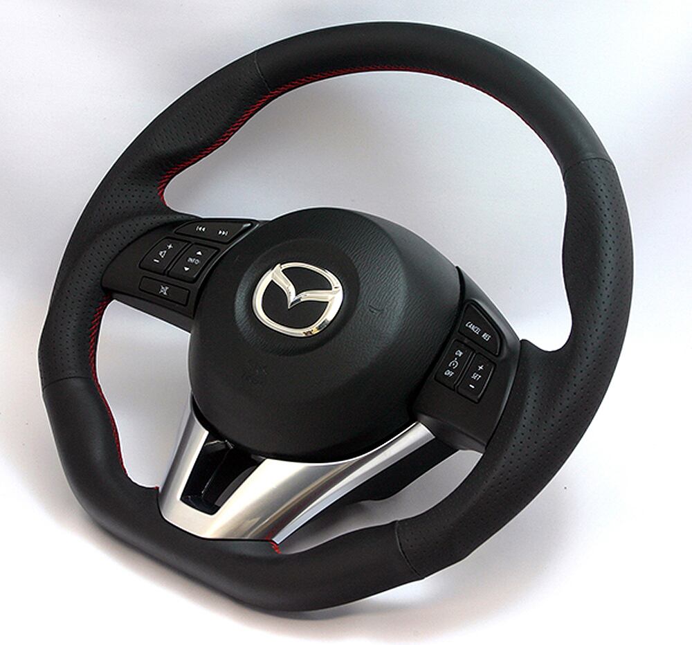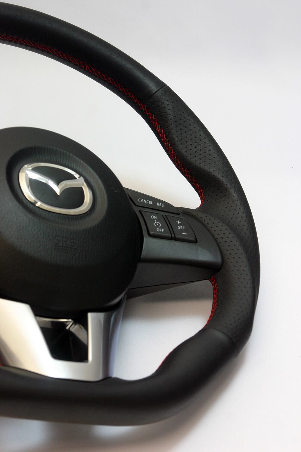 ケンスタイル ステアリング アクセラ 前期 型式 BM# 年式 H25/11-H28/6 ≪ ガングリップ ブラックレザー レッドステッチ ≫ マツダステアリング 【 MA01 】