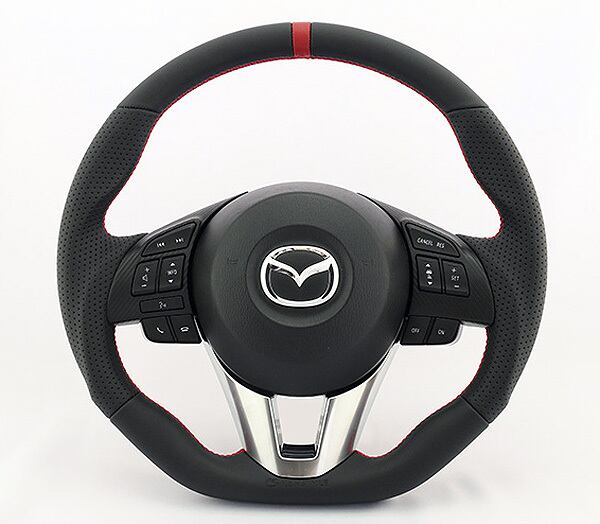 ケンスタイル ステアリング アクセラスポーツ 前期 型式 BM# 年式 H26/1-H28/6 ≪ ナッパレザ ー&レッドライン ガングリップ レッドステッチ ≫ マツダステアリング 【 MA08 】