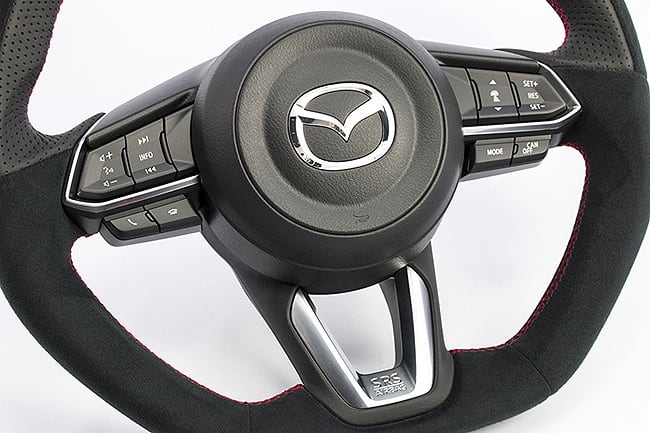 ケンスタイル ステアリング アクセラハイブリッド 後期 型式 BY# 年式 H28/7- ≪ ウルトラスエード&ブラックレザー レッドステッチ ≫ マツダステアリング 【 MD02 】※カーボンパネル別売