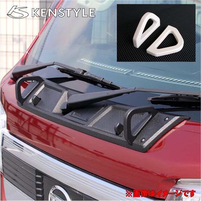 ケンスタイル ボンネットカスタムガーニッシュ ≪ カスタムフック:塗装済2個&未塗装2個 計4個セット ≫ サンバートラックグランドキャブ S500J/S510J R4/2- ≪ ガーニッシュ本体:チッピング柄マットブラック塗装済 ≫【 D-LINER 】