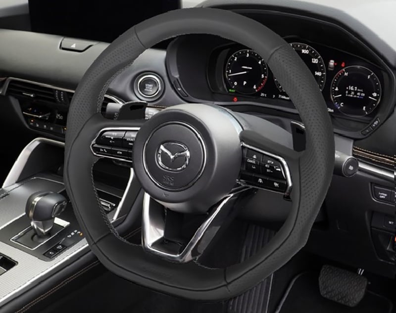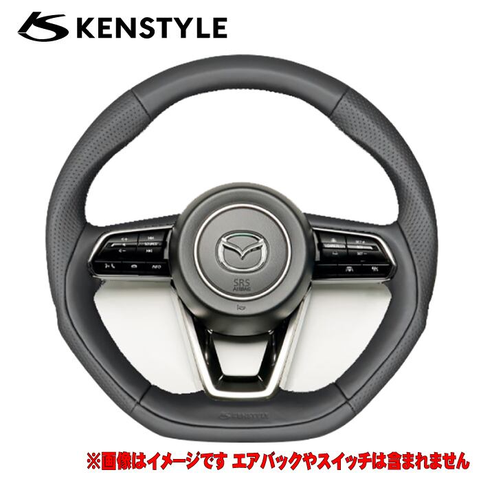ケンスタイル ステアリング CX-80 型式 3DA-KL3P/3CA-KL3R3P/5LA-KL5S3P 年式 R6/10- ≪ ガングリップ ブラックナッパレザー シルバーステッチ KENSTYLE刻印ロゴ入 ※純正ステアリングヒーター非作動 ≫ マツダステアリング 【 MG01 】