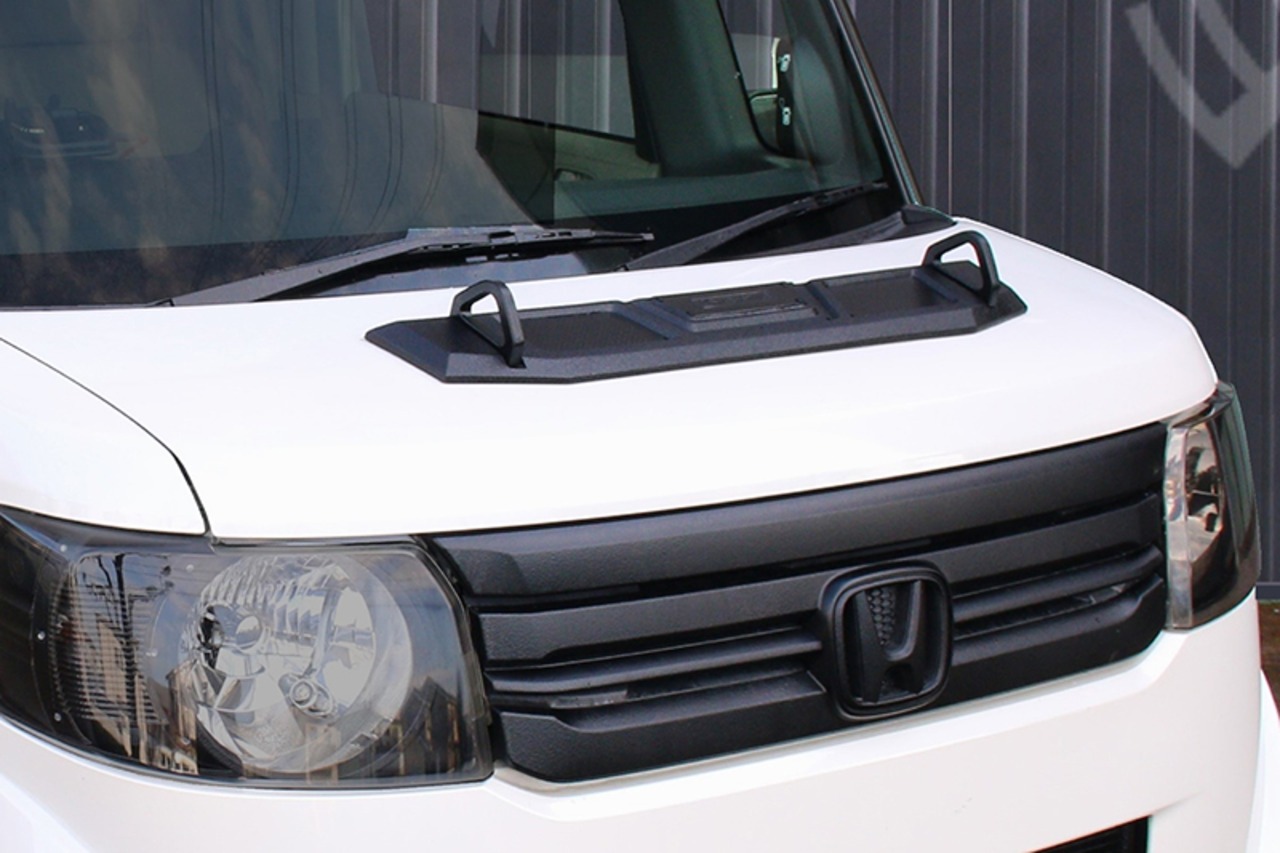 ケンスタイル ボンネットカスタムガーニッシュ N-BOX エヌボックス JF1/JF2 カスタム可 ≪ ポリウレタン製 チッピング柄マットブラック塗装仕上げ ≫※画像内別売パーツ多数有 【 マルチアクセサリー 】